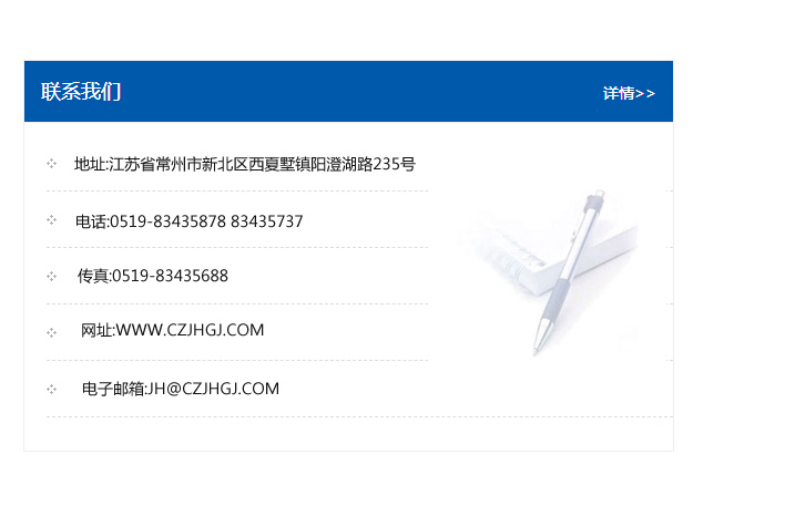 傳真:0519-83435688    郵編:213135    網址:WWW.czjhgj_com.htbz888.com    電子郵箱:JH@czjhgj_com.htbz888.com